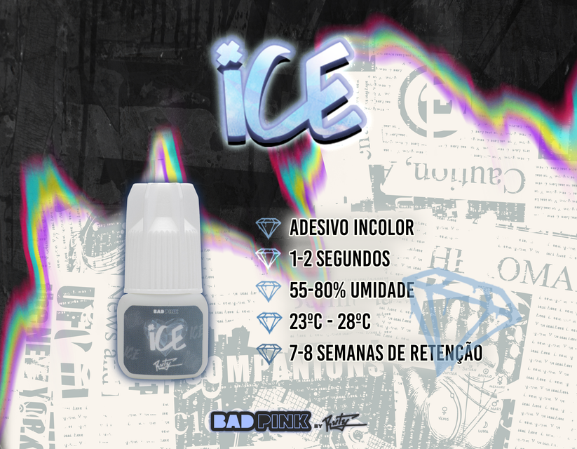 Tempo de secagem da cola BAD PINK – ICE: 1 – 2 seg
