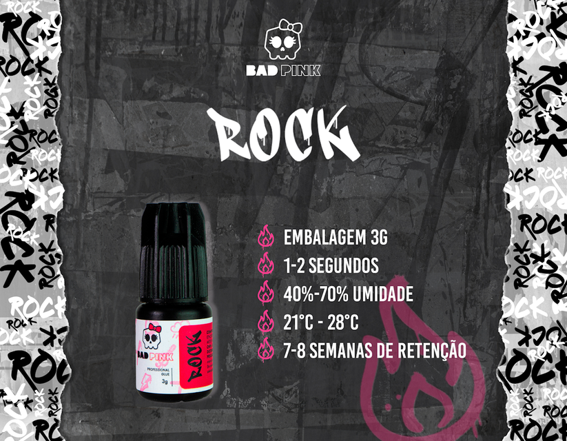 Tempo de secagem da cola BAD PINK – ROCK: 1 – 2 seg