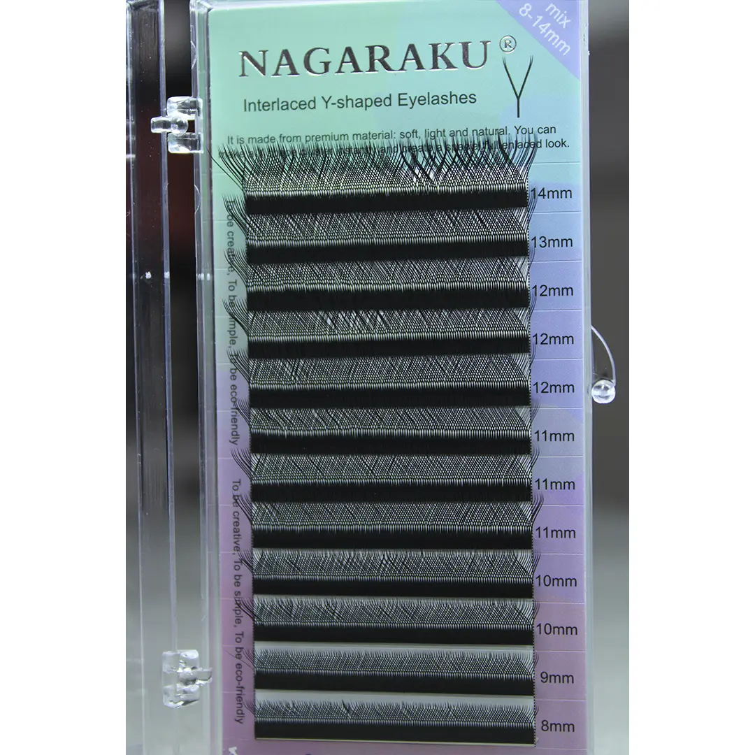 Cílios Nagaraku Meshy Y Shape se trata de uma tendência de fio no formato “Y” para ser utilizada pelas profissionais extensionistas de cílios na técnica de extensão de cílios fio a fio. Popularmente conhecido como “volume brasileiro”.